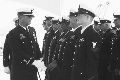 CWO Preston Logan saying his goodbyes to those under his command at ANT Southwest Harbor, Maine during Change of Command Ceremonies. Back to the edition of: October 2001